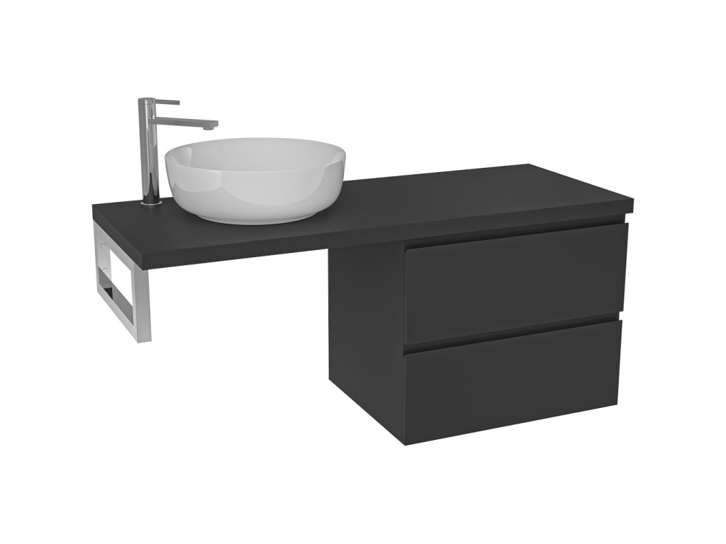 CERANO - Doska pod umývadlo Navira Pro - 121x46,5x3,6 cm - skrinka Carole 59 cm - čierna matná - konzola chróm