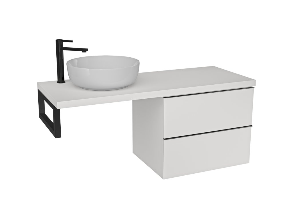 CERANO - Doska pod umývadlo Navira Pro - 121x46,5x3,6 cm - skrinka Velora 59 cm - biela matná, čierna úchytka - konzola čierna