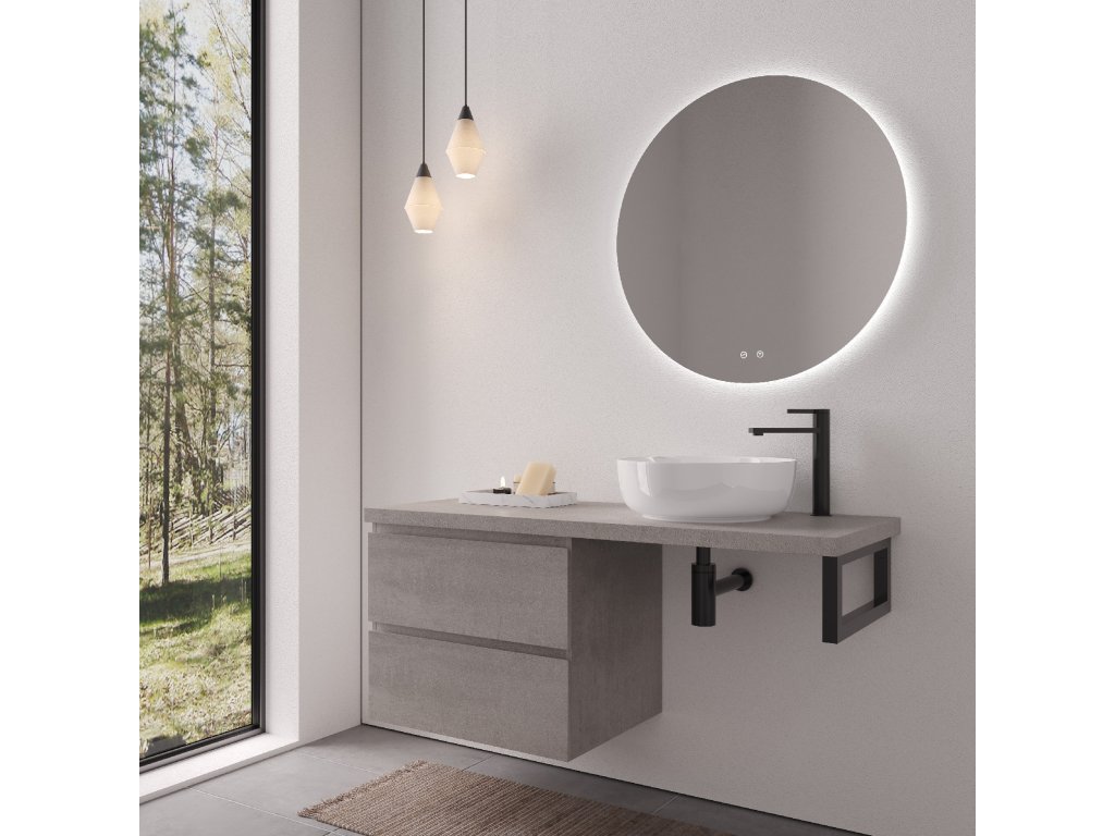 CERANO - Doska pod umývadlo Navira Pro - 161x46,5x3,6 cm - skrinka Carole 79 cm - betónovo šedá - konzola čierna
