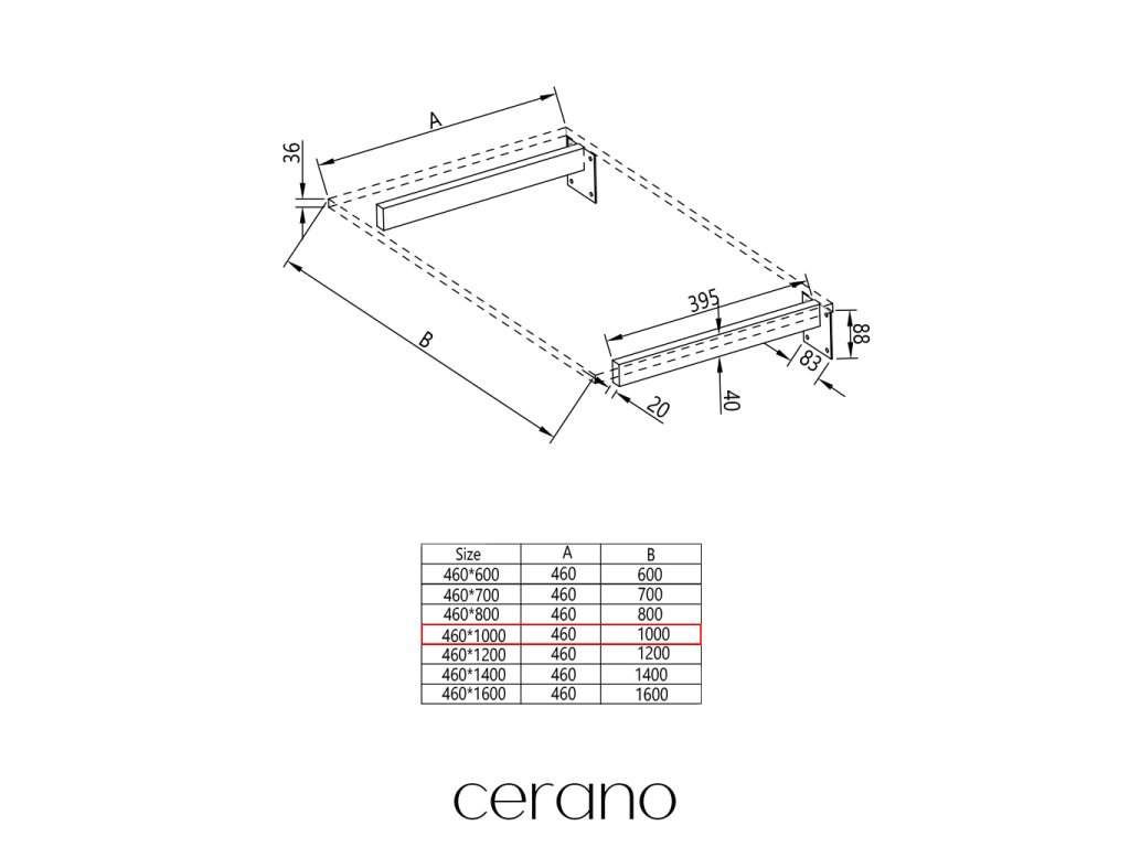 CERANO - Doska pod umývadlo Navira Pro + 2 skryté konzoly - čierna matná - 101x46,5x3,6 cm