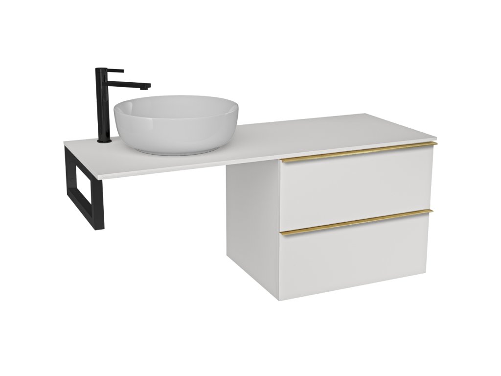 CERANO - Doska pod umývadlo z liateho mramoru Elanys - 120x46,5x1,2 cm - skrinka Velora 59 cm - biela matná, zlatá úchytka - konzola čierna