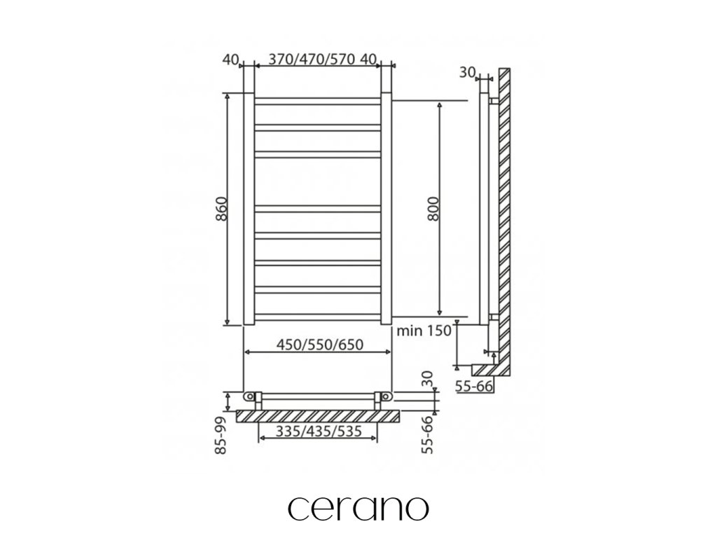 CERANO - Elektrický sušiak uterákov Domenico - 128 W - biela lesklá - 860x550 mm