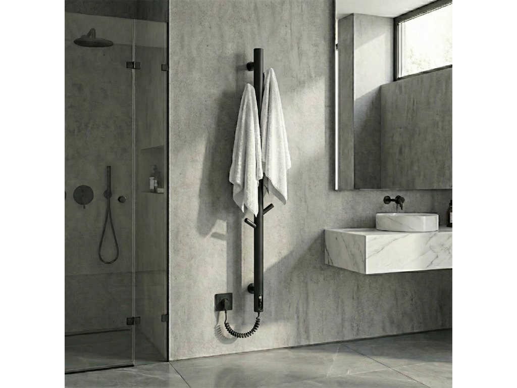 CERANO - Elektrický sušiak uterákov Ramus, s displejom - 160W - čierna štruktúrovaná matná - 1400x30 mm
