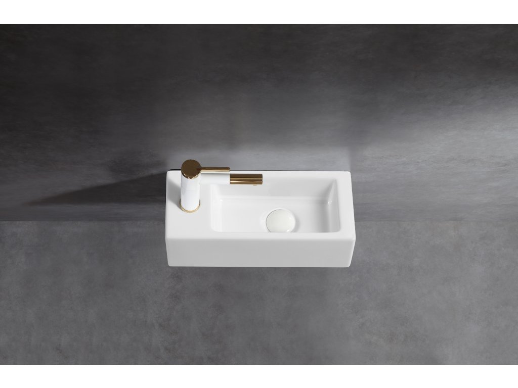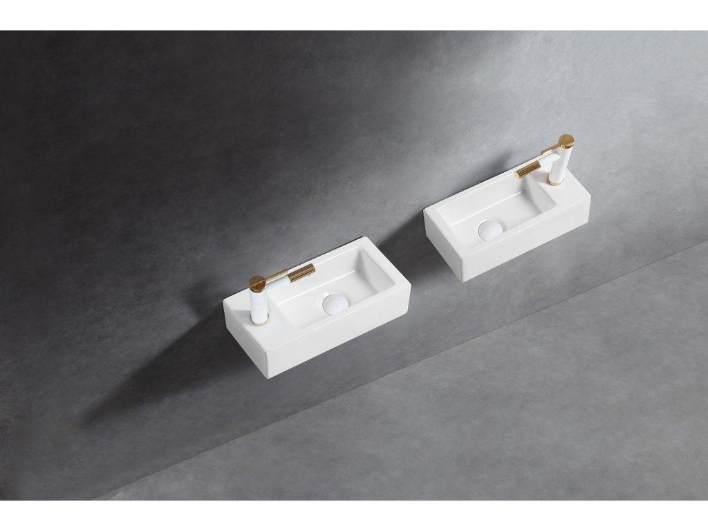 CERANO - Keramické umývadlo Roberto, závesné ľavé - biela lesklá - 37,7x18,5 cm