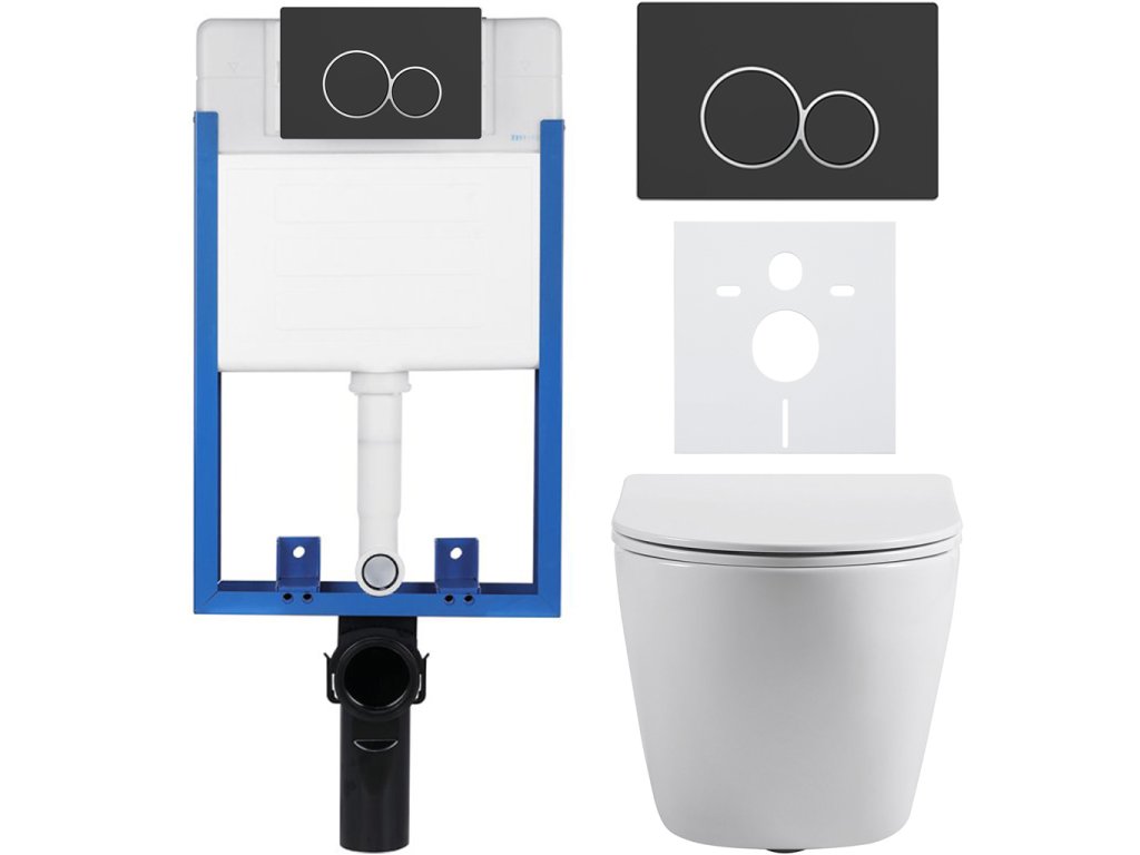 CERANO - Kompletný podomietkový WC set Lite/Cesso - biela lesklá - WC tlačidlo Duo, čierna matná - na zamurovanie - 49x36 cm