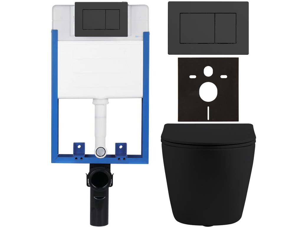 CERANO - Kompletný podomietkový WC set Lite/Cesso - čierna matná - WC tlačidlo Classic, čierne matné - na zamurovanie - 49x36 cm