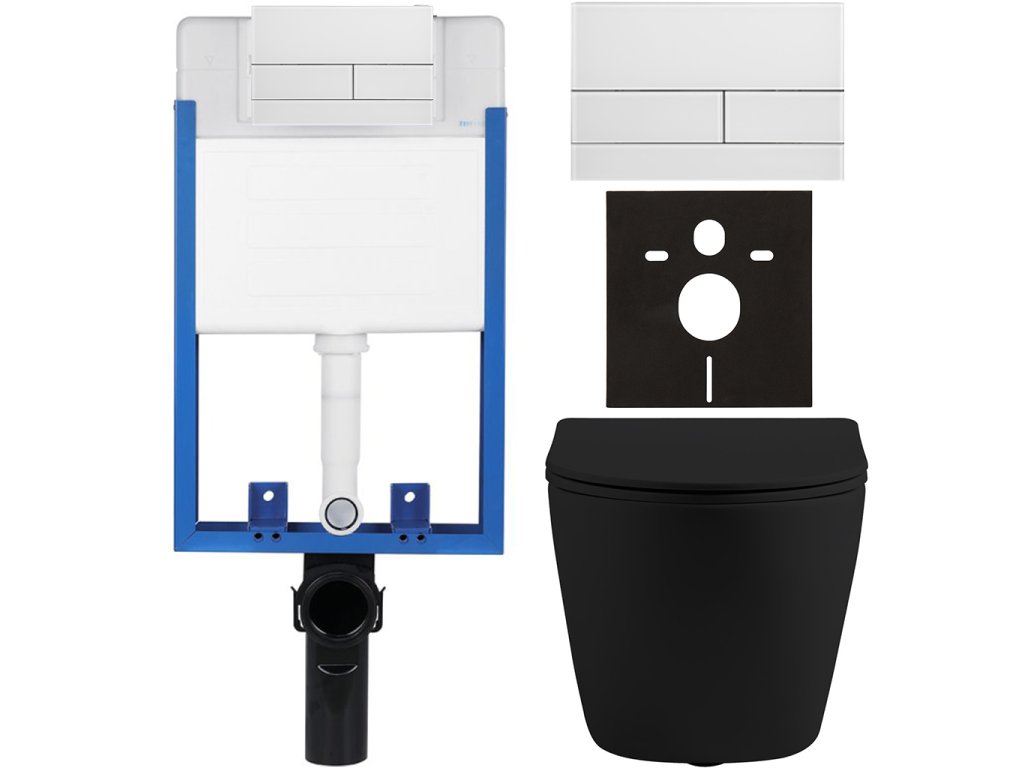 CERANO - Kompletný podomietkový WC set Lite/Cesso - čierna matná - WC tlačidlo Line, biela - na zamurovanie - 49x36 cm