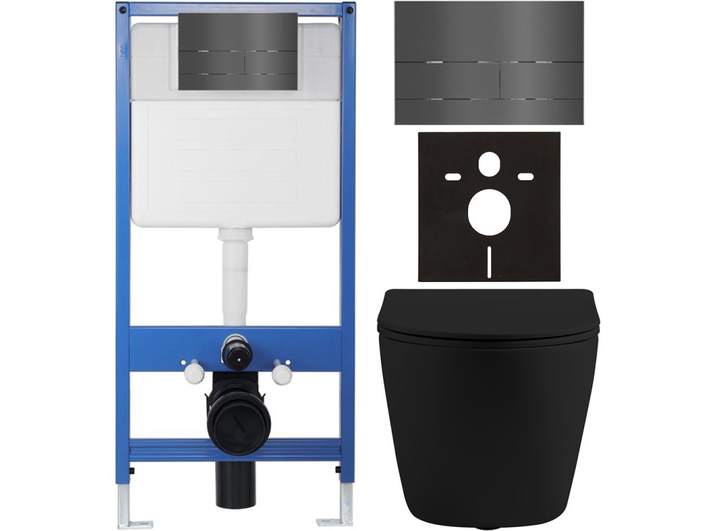 CERANO - Kompletný podomietkový WC set Lite/Cesso - čierna matná - WC tlačidlo Line, tmavo šedá - predstenová inštalácia - 49x36 cm