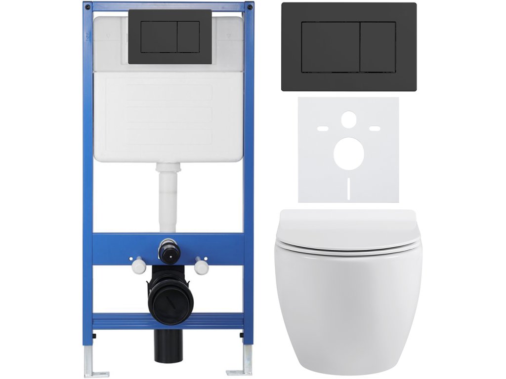 CERANO - Kompletný podomietkový WC set Lite/Dure - biela lesklá - WC tlačidlo Classic, čierne matné - predstenová inštalácia / sadrokartón - 51x35 cm