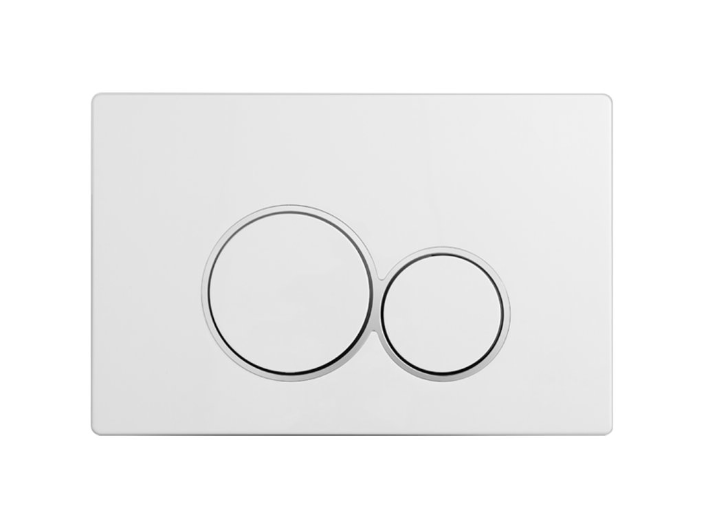 Tlačidlo je umiestnené v prednej časti rámu, čo uľahčuje prístup a zaisťuje pohodlné ovládanie splachovania. Toto riešenie je ideálne pre kúpeľne, kde je preferované jednoduché a ľahko dostupné ovládanie.