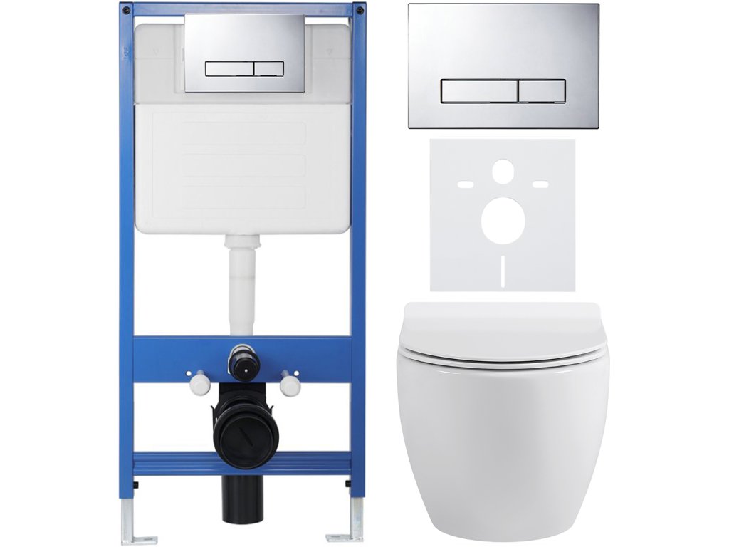 CERANO - Kompletný podomietkový WC set Lite/Dure - biela lesklá - WC tlačidlo Slim, chróm - predstenová inštalácia / sadrokartón - 51x35 cm