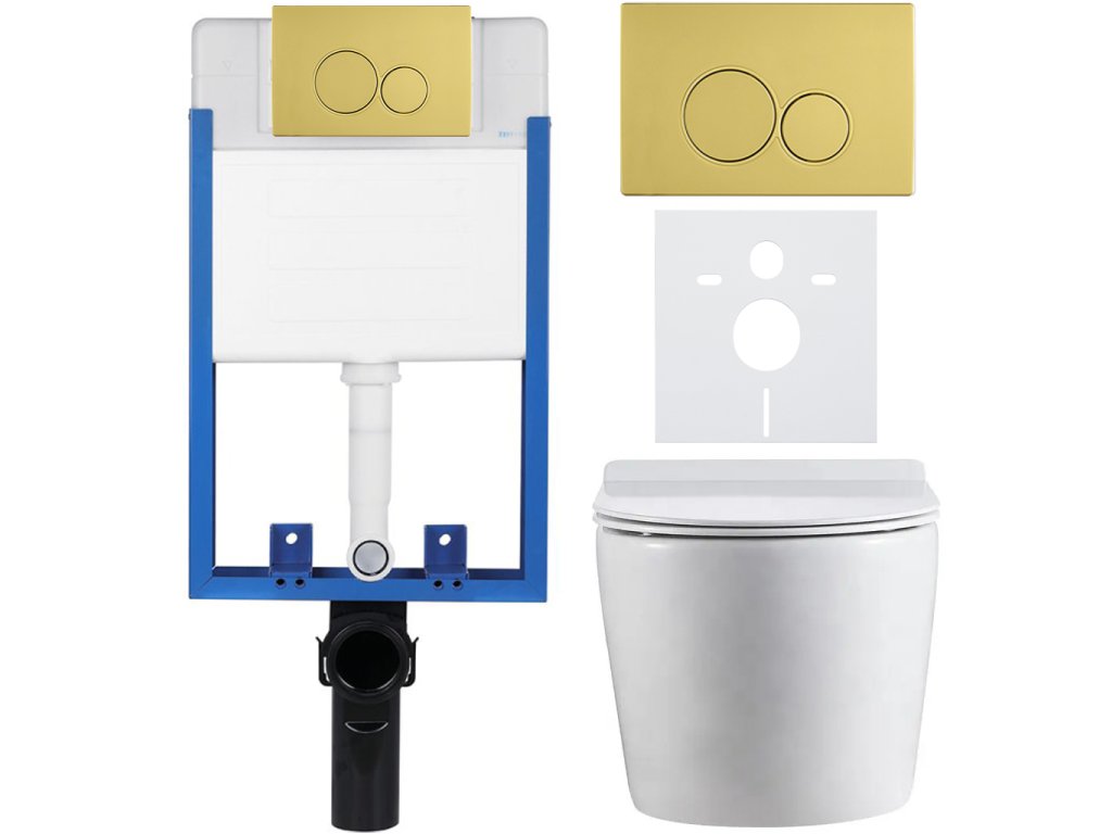 CERANO - Kompletný podomietkový WC set Lite/Felci - biela lesklá - WC tlačidlo Duo, zlatá - na zamurovanie - 52,5x36 cm