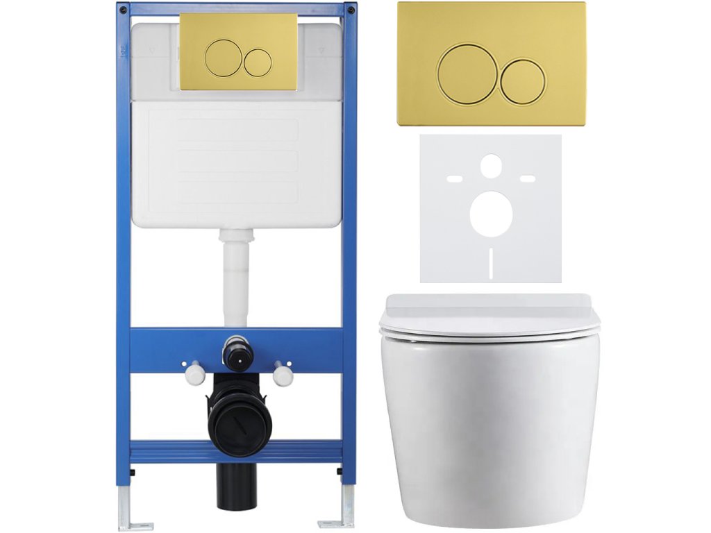 CERANO - Kompletný podomietkový WC set Lite/Felci - biela lesklá - WC tlačidlo Duo, zlatá - predstenová inštalácia - 52,5x36 cm