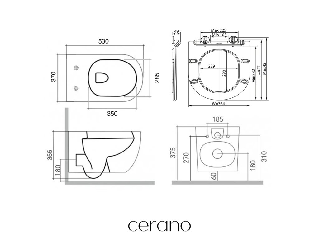Závesné WC misy Cerano sa ľahko montujú a vďaka štandardnej rozteči uchytenia, sú kompatibilné s modulmi Cerano, ako aj od značiek ako Geberit, Grohe, Alcadrain, Jika, Tece ai.