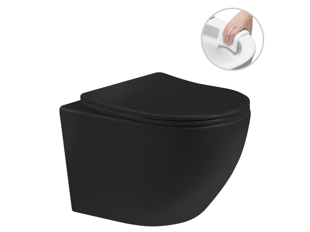 CERANO - Kompletný podomietkový WC set Lite/Verde - čierna lesklá - WC tlačidlo Duo, biela - predstenová inštalácia - 49x36 cm