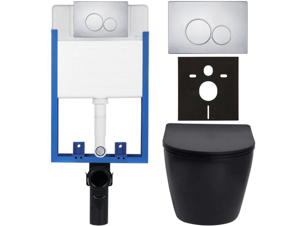CERANO - Kompletný podomietkový WC set Lite/Verde - čierna matná - WC tlačidlo Duo, chróm - na zamurovanie - 49x36 cm