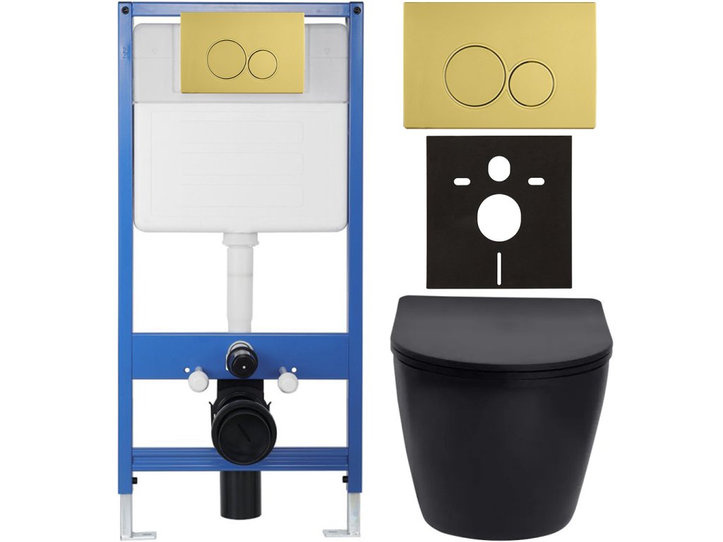 CERANO - Kompletný podomietkový WC set Lite/Verde - čierna matná - WC tlačidlo Duo, zlatá - predstenová inštalácia - 49x36 cm