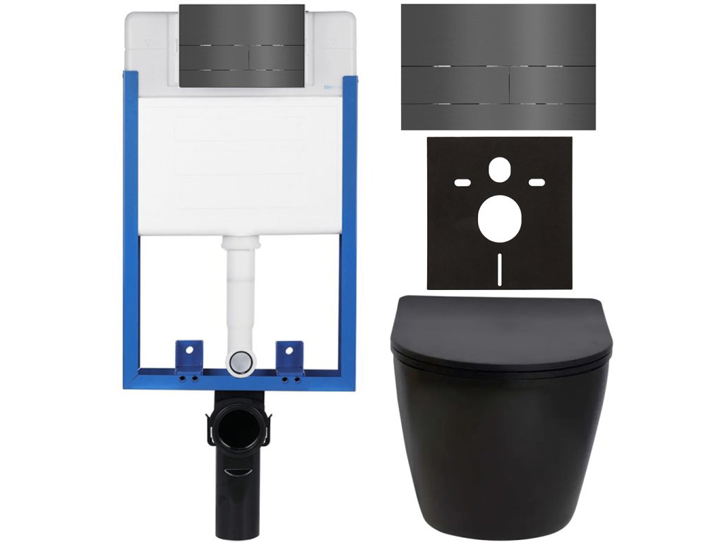 CERANO - Kompletný podomietkový WC set Lite/Verde - čierna matná - WC tlačidlo Line, tmavo šedá - na zamurovanie - 49x36 cm