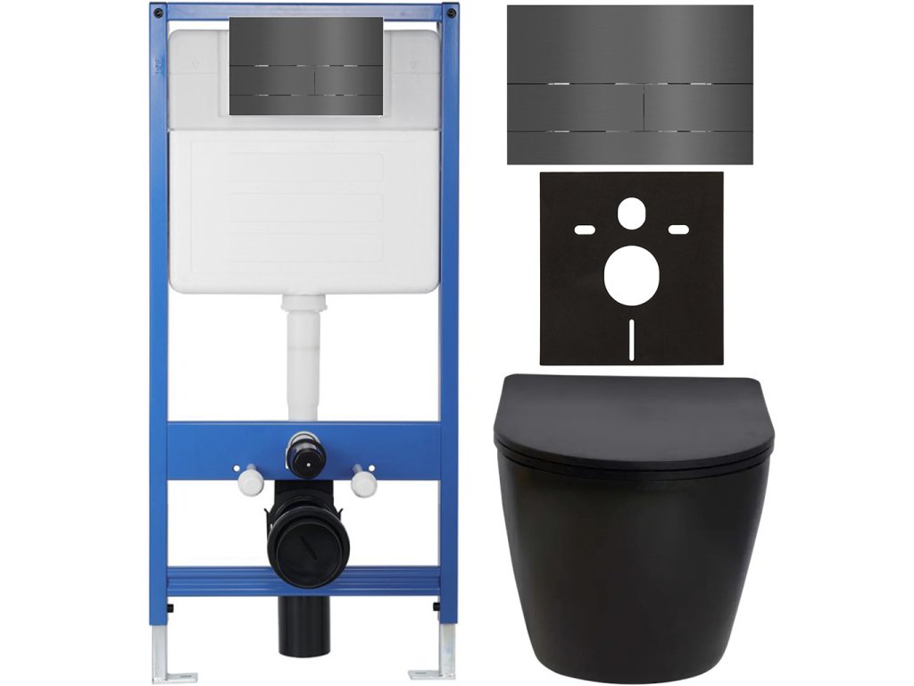 CERANO - Kompletný podomietkový WC set Lite/Verde - čierna matná - WC tlačidlo Line, tmavo šedá - predstenová inštalácia - 49x36 cm