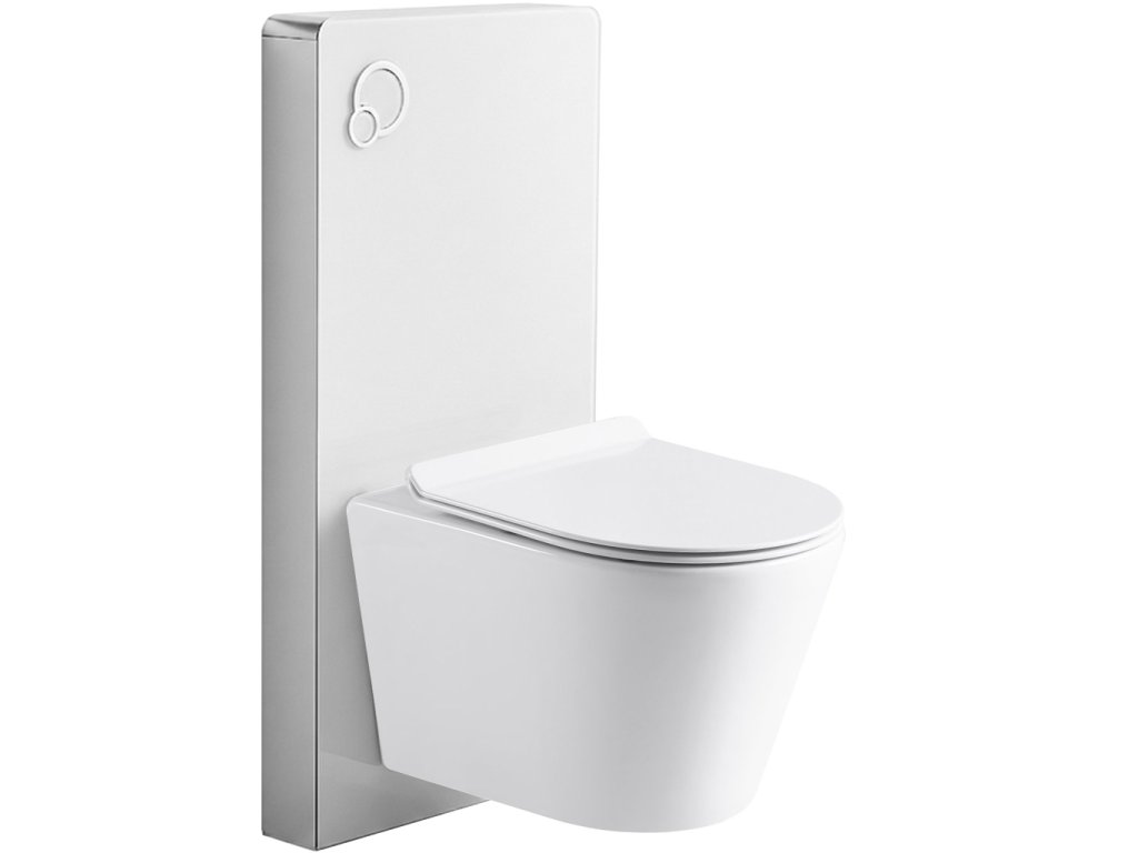 CERANO - Kompletný WC set sanitárny splach. modul - biela matná + WC závesné Norbi, Rimless + Slim/UF sedátko - biela lesklá - 48,5x36,5 cm