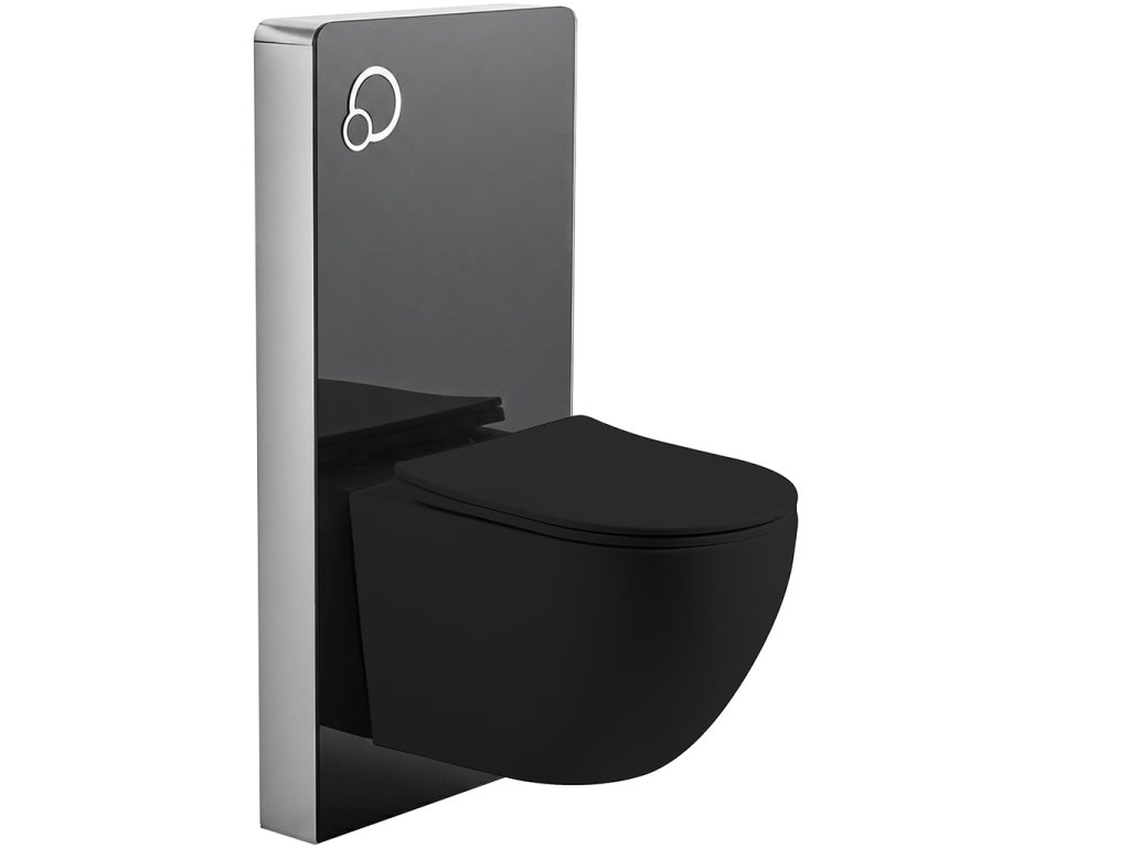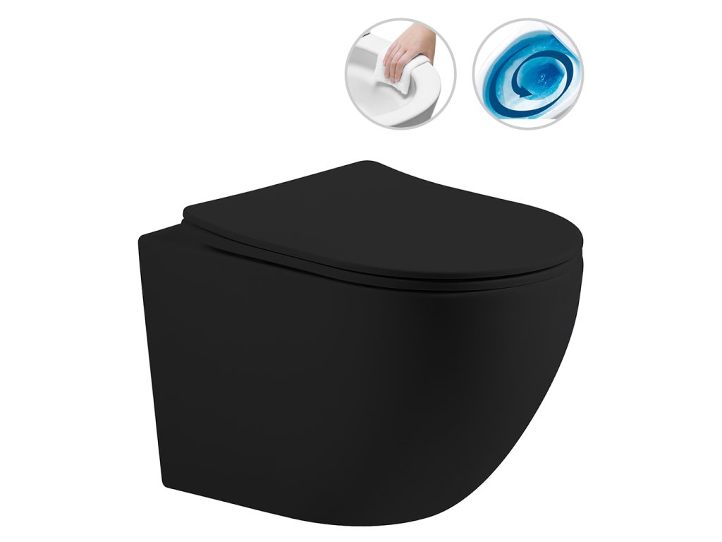 CERANO - Kompletný WC set sanitárny splach. modul - čierna matná + WC závesné Cesso, Vortex Rimless + Slim/UF sedátko - čierna matná - 49x36 cm