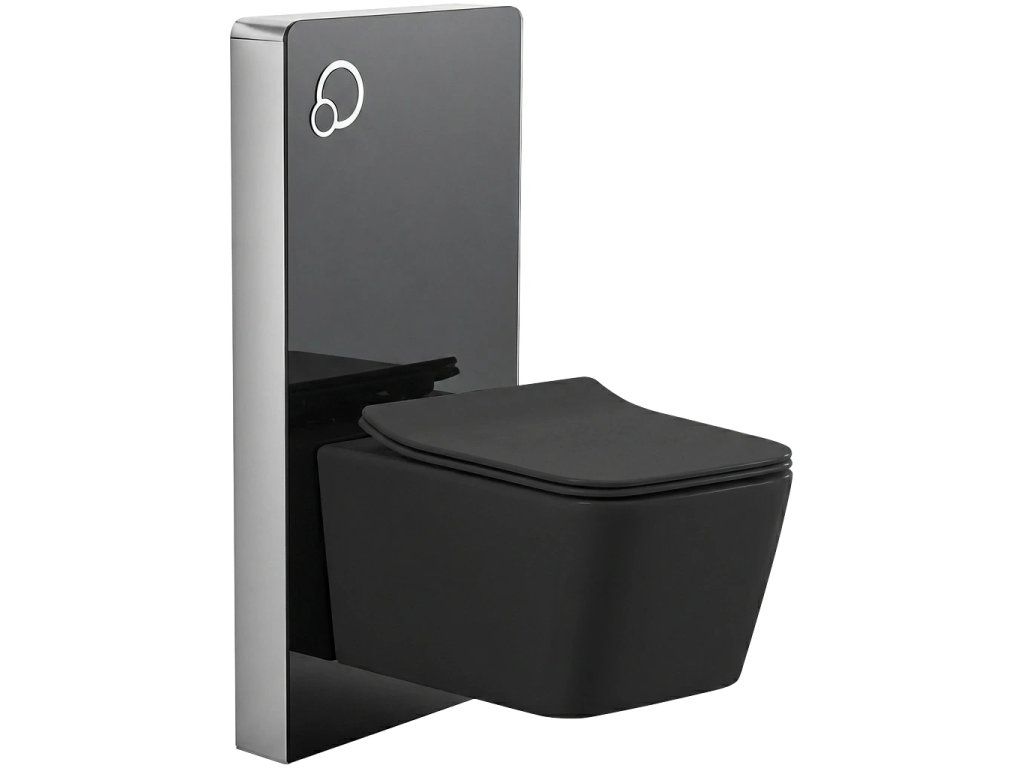 CERANO - Kompletný WC set sanitárny splach. modul - čierna matná + WC závesné Forte, Rimless + Slim/UF sedátko - čierna matná - 51x36 cm