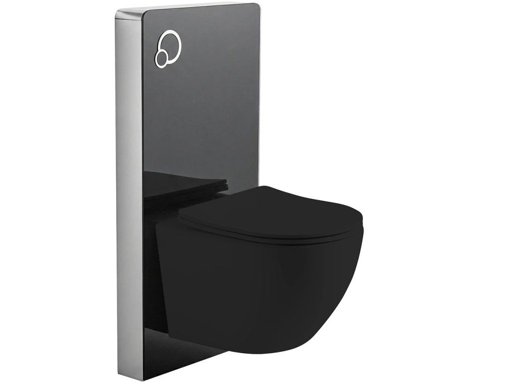 CERANO - Kompletný WC set sanitárny splach. modul - čierna matná + WC závesné Verde, Rimless + Slim/UF sedátko - čierna matná - 49x36 cm