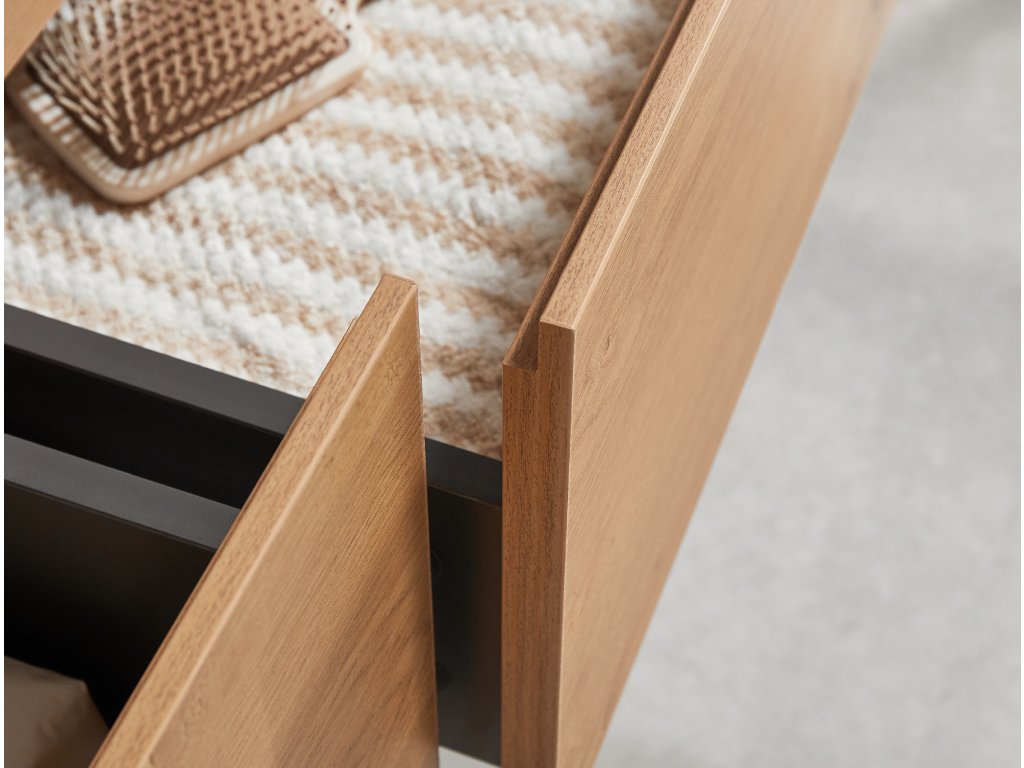 Funkcia tichého dovierania (Quiet Close) zaisťuje, že sa zásuvky zatvárajú hladko a bez hluku. Tento mechanizmus minimalizuje opotrebenie nábytku a prispieva k dlhodobej životnosti skrinky. Umožňuje tiché a pohodlné používanie, čo oceníte najmä v ranných a nočných hodinách.
