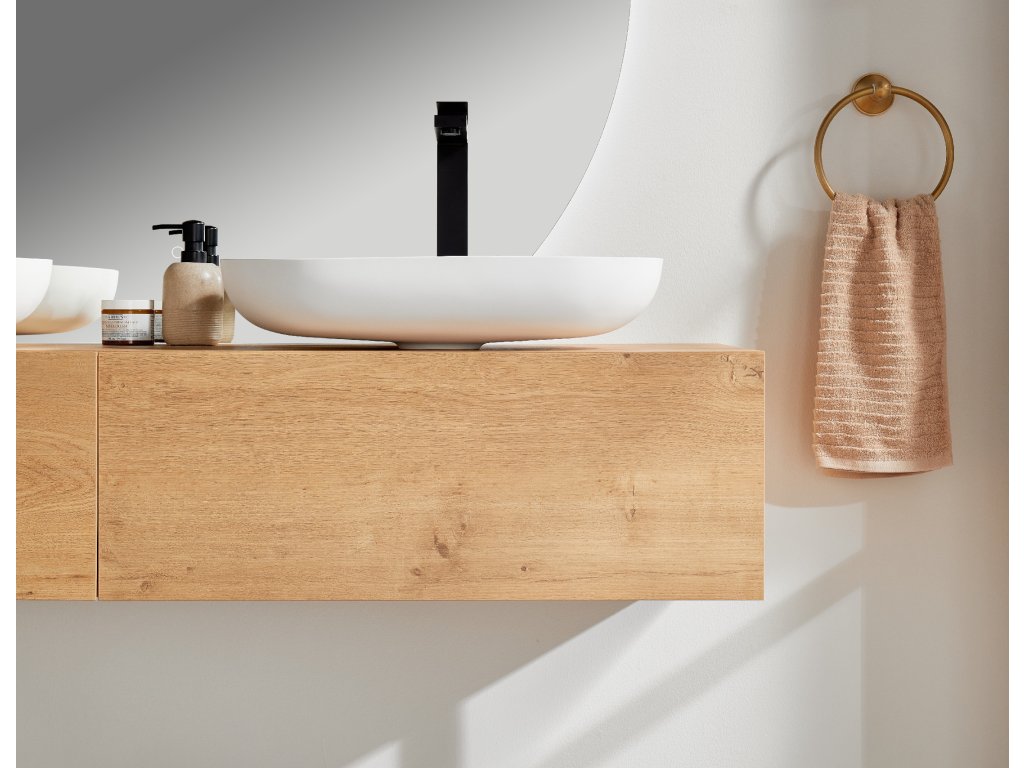 Naše kúpeľňové skrinky prichádzajú už v zmontovanom stave, čo vám ušetrí čas aj námahu pri ich inštalácii. Sú vyrobené z kvalitných materiálov a ponúkajú dostatok úložného priestoru pre všetky vaše potreby.