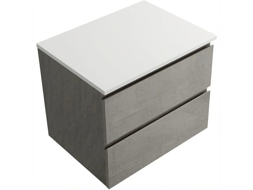 CERANO - Kúpeľňová skrinka Carole - betónovo šedá + doska pod umývadlo z lit. mramoru Elanys - 12 mm - biela matná - 60x49,2x46 cm