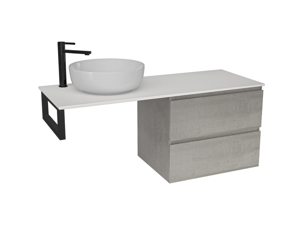 CERANO - Kúpeľňová skrinka Carole - betónovo šedá + doska pod umývadlo z lit. mramoru Elanys - 12 mm + konzola čierna - 140x46x54, 2 cm
