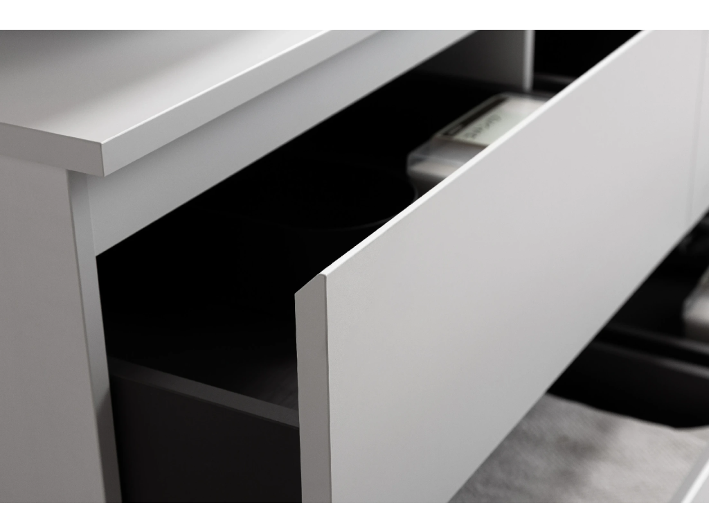 Vďaka integrovanému soft-close mechanizmu sa dvierka a zásuvky zatvárajú plynulo a ticho – hydraulický doraz tlmí náraz, zabraňuje búchaniu a znižuje opotrebenie, takže nábytok vydrží dlhšie a používanie je pohodlné.