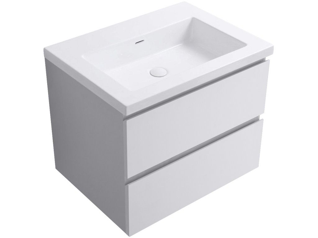 CERANO - Kúpeľňová skrinka Carole - biela matná + umývadlo z lit. mramoru Ovo - biela lesklá - 60,5x53x46,3 cm