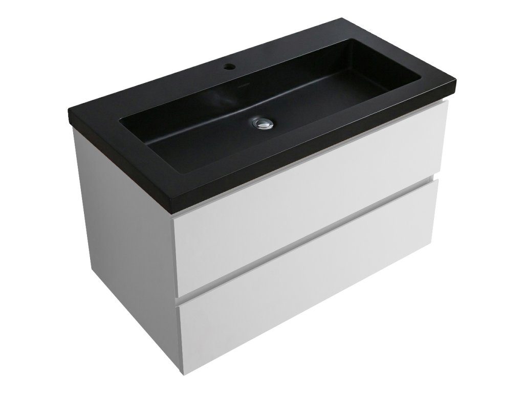 CERANO - Kúpeľňová skrinka Carole - biela matná + umývadlo z lit. Mramoru Ovo - čierna matná - 101x49,5x46,5 cm