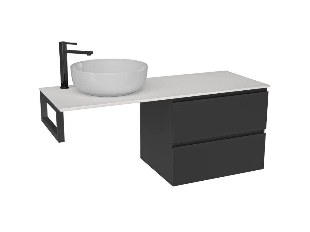 CERANO - Kúpeľňová skrinka Carole - čierna matná + doska pod umývadlo z lit. mramoru Elanys - 12 mm + konzola čierna - 140x46x54, 2 cm