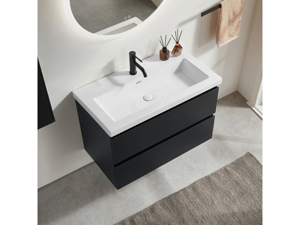 CERANO - Kúpeľňová skrinka Carole - čierna matná + umývadlo z lit. mramoru Ovo - biela lesklá - 70,5x53x46,3 cm