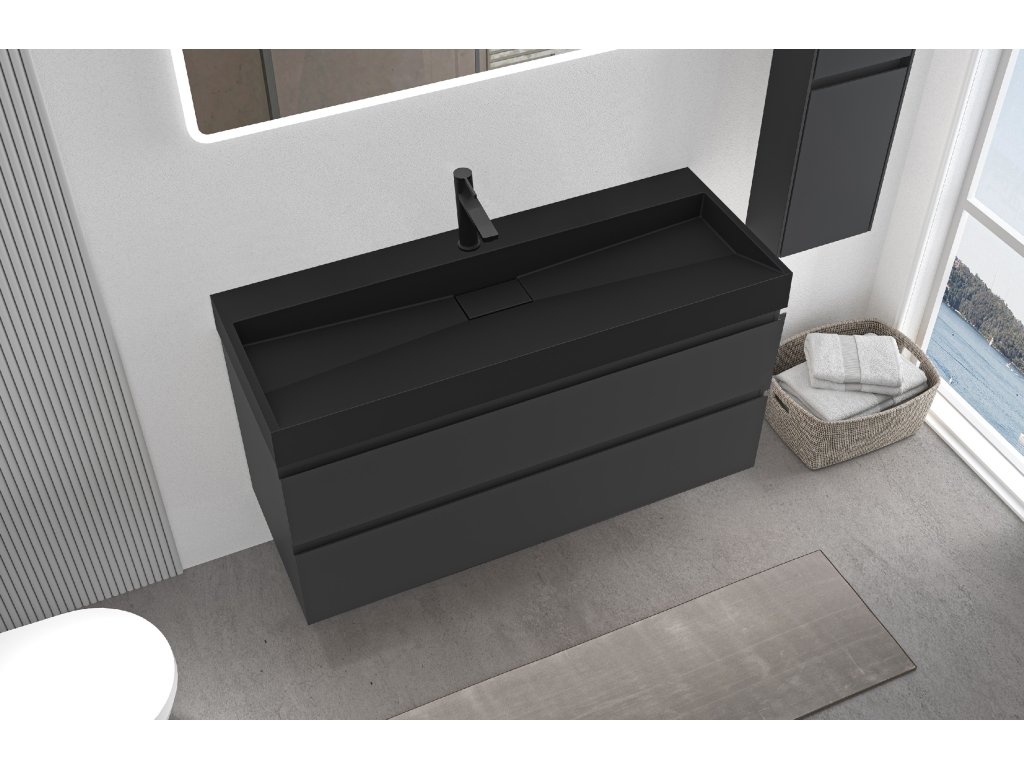 CERANO - Kúpeľňová skrinka Carole - čierna matná + umývadlo z lit. mramoru Vita - otvor - čierna matná - 100x58x46 cm