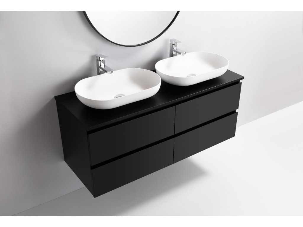 CERANO - Kúpeľňová skrinka Carole + doska pod umývadlo Navira Slim - 18 mm - čierna matná - 140x49, 8x46 cm