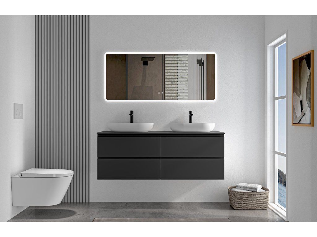 CERANO - Kúpeľňová skrinka Carole + doska pod umývadlo Navira Slim - 18 mm - čierna matná - 160x49, 8x46 cm