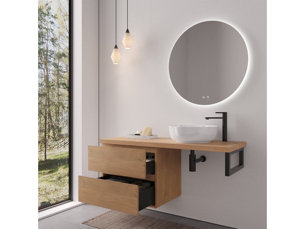 CERANO - Kúpeľňová skrinka Carole - dub medový + doska pod umývadlo Navira Pro - 36 mm + konzola čierna - 160x46x56, 6 cm