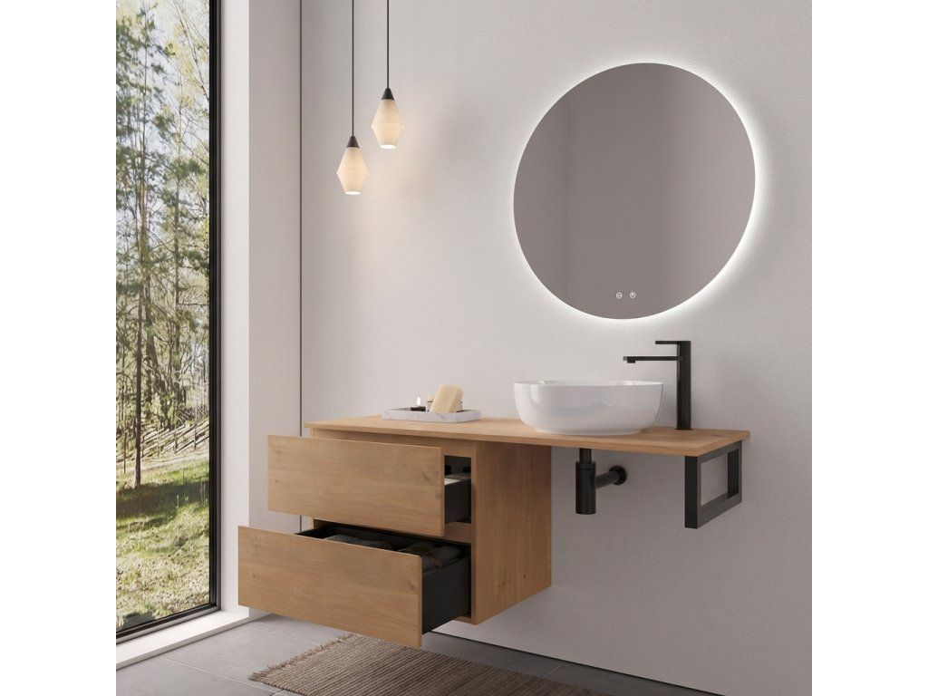 CERANO - Kúpeľňová skrinka Carole - dub medový + doska pod umývadlo Navira Slim - 18 mm + konzola čierna - 120x46x54, 8 cm
