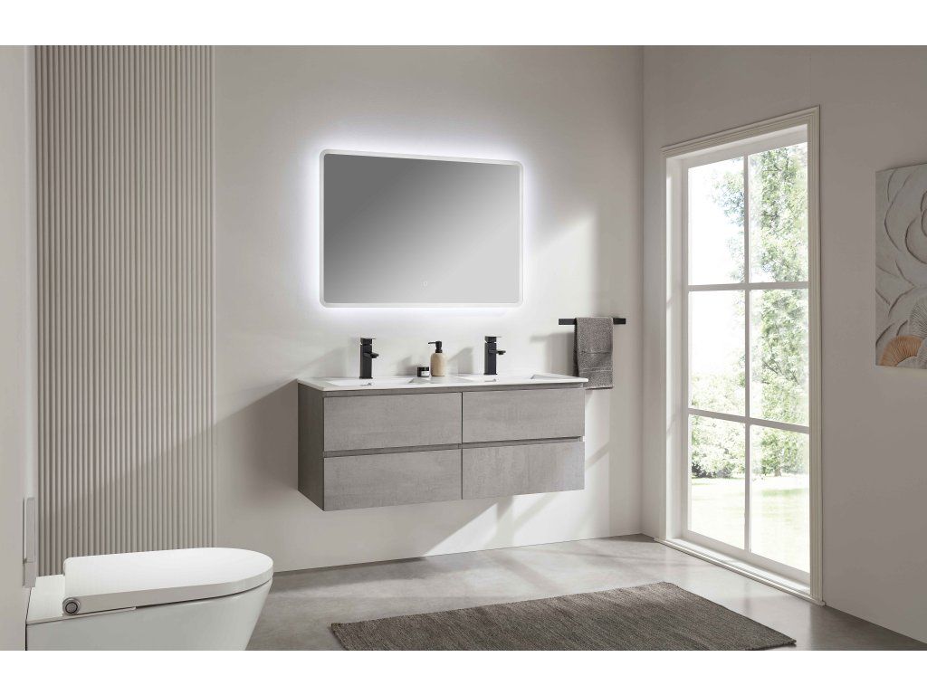 CERANO - Kúpeľňová skrinka Carole + keramické dvojumývadlo Todo - betónovo šedá - 121x50x46,5 cm