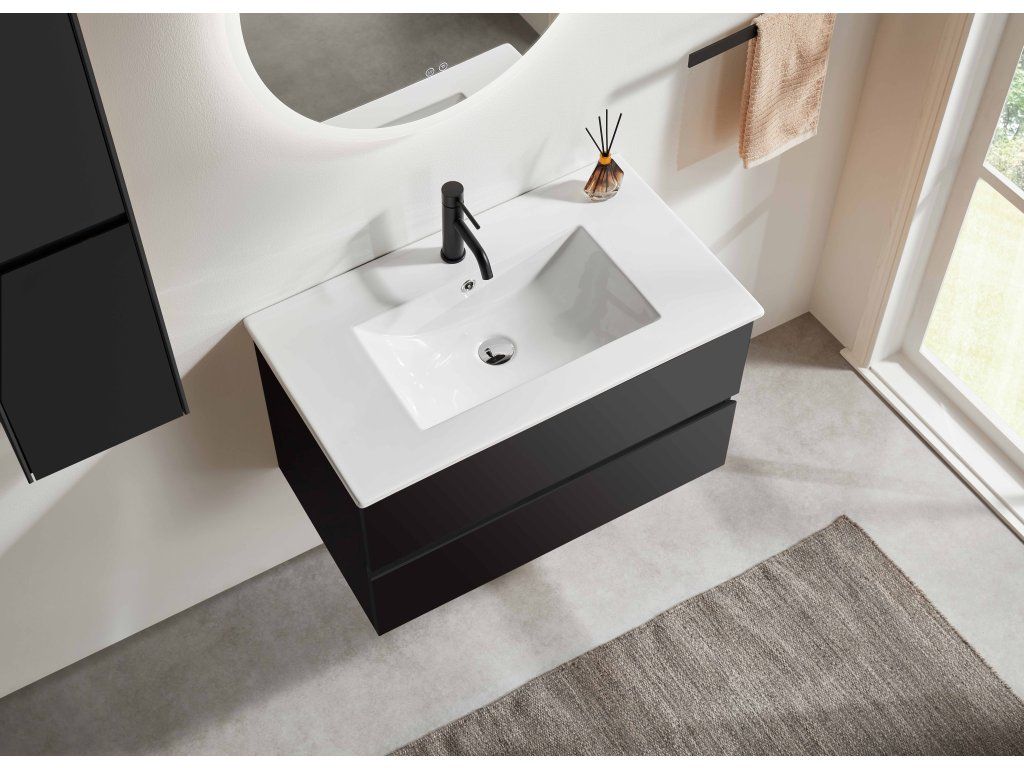CERANO - Kúpeľňová skrinka Carole + keramické umývadlo Todo - čierna matná - 61x50x46, 5 cm