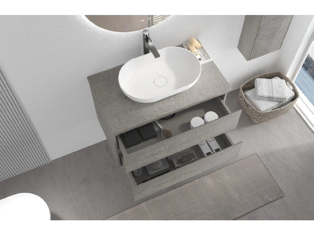 CERANO - Kúpeľňová skrinka Carole s doskou pod umývadlo - 18 mm - betónovo šedá - 80x49,8x46,5 cm