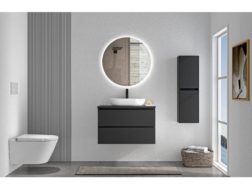 CERANO - Kúpeľňová skrinka Carole s doskou pod umývadlo - 18 mm - čierna matná - 80x49,8x46,5 cm