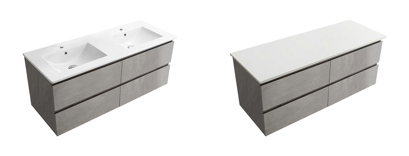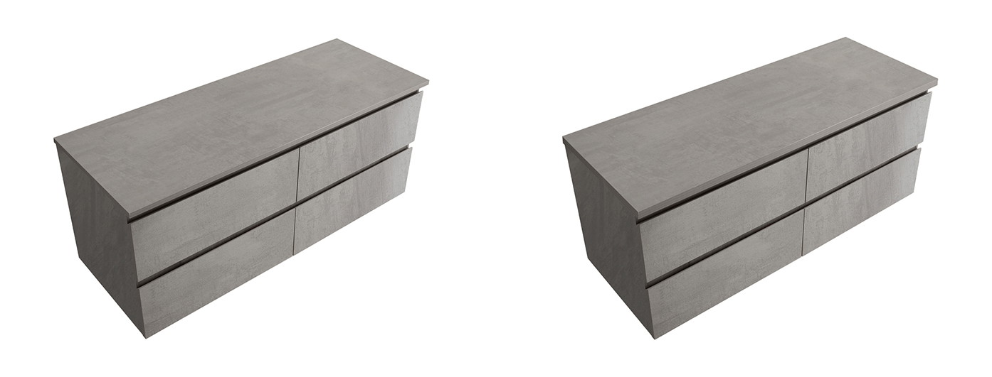 CERANO - Kúpeľňová skrinka Carole s doskou pod umývadlo - 36 mm - betónovo šedá - 141x51,6x46,5 cm