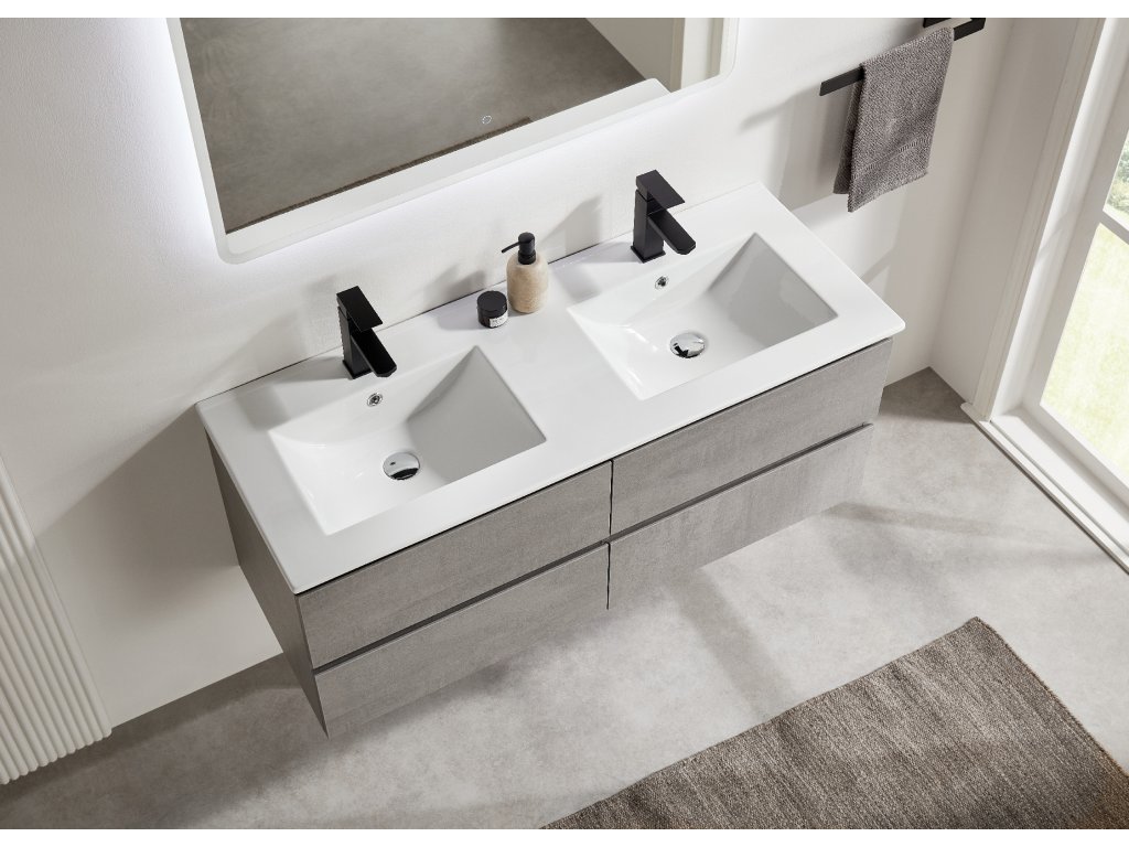 CERANO - Kúpeľňová skrinka pod umývadlo Carole - betónovo šedá - 138x48x45 cm