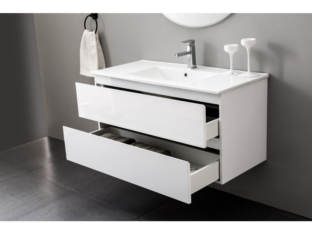 CERANO - Kúpeľňová skrinka pod umývadlo Carole - biela matná - 99x48x45 cm