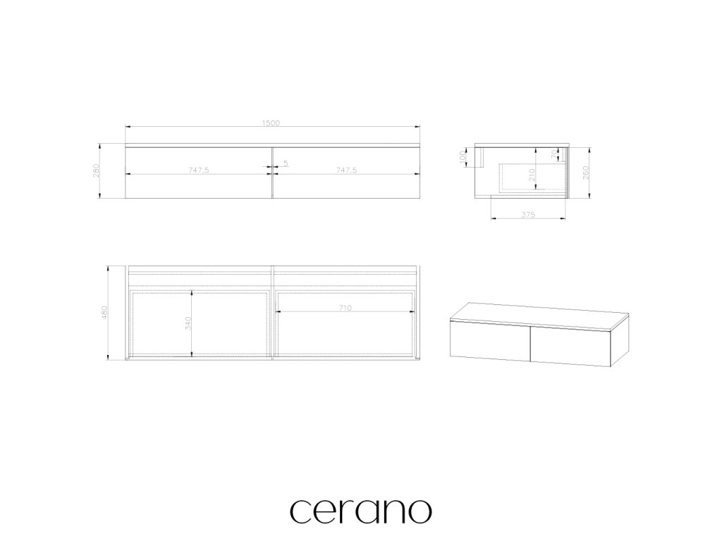 CERANO - Kúpeľňová skrinka pod umývadlo Noira - dub medový - 150x48x28 cm