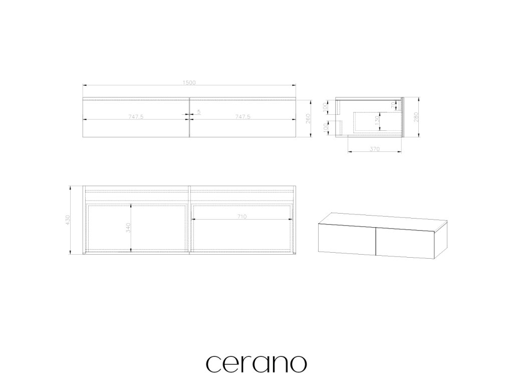 CERANO - Kúpeľňová skrinka pod umývadlo Noira - šedá matná - 150x43x28 cm